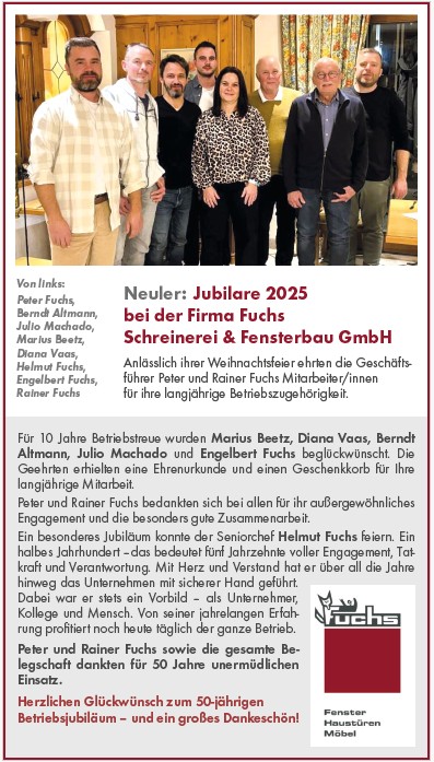 Unser Seniorchef Helmut Fuchs begeht sein 50-jähriges Betriebsjubiläum.